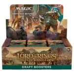 The Lord of the Rings: Tales of Middle-earth Draft Booster Box contains 36 The Lord of the Rings: Tales of Middle-earth Draft Boosters and 1 Traditional Foil Box Topper card. Each Draft Booster contains 15 cards and 1 token/ad card or Helper card, including 1 card of rarity Rare or higher and 3 Uncommons, 10 Commons, and 1 Land cards. Traditional Foil Borderless Mythic Rare card in <1% of boosters. Traditional Foil of any rarity replaces a Common in 33% of boosters.