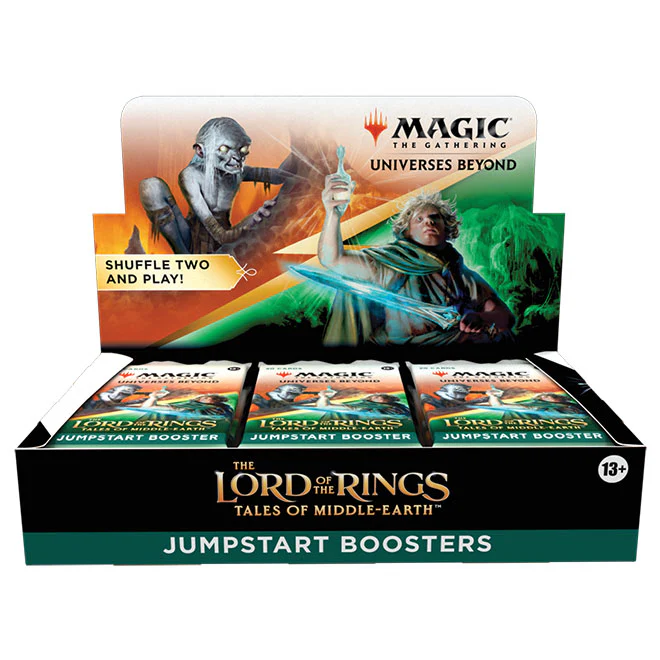 The Lord of the Rings: Tales of Middle-earth Jumpstart Booster Box contains 18 The Lord of the Rings: Tales of Middle-earth Jumpstart Boosters. Each booster has a theme. Just grab two packs and shuffle them together for wild combos and a unique gameplay experience that’s great for a quick game, for long-time fans looking to jump back in, or for a fun way to learn to play.