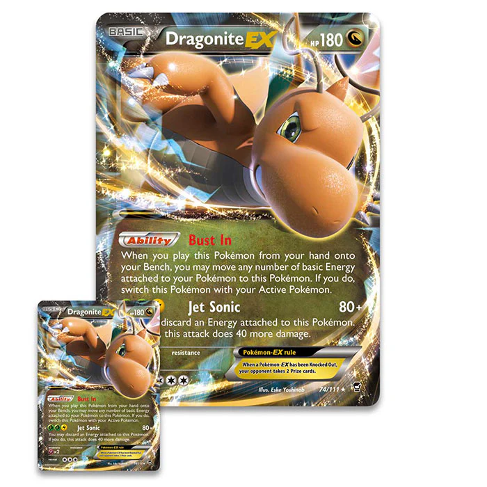 Each box includes a foil card and oversize card featuring Dragonite-EX, plus 4 Pokemon TCG booster packs: