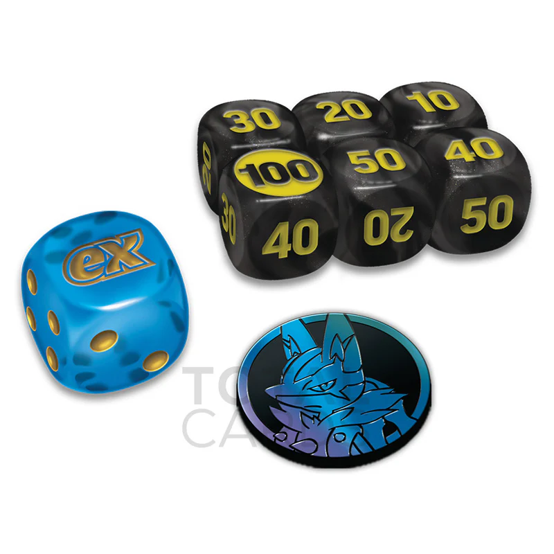 • You also get 65 card sleeves, 40 Pokémon TCG Energy cards, 6 damage-counter dice, and 1 competition-legal coin-flip die.