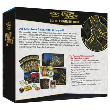Die Pokémon-Sammelkartenspiel-Elite-Trainerbox: Scharlachrot & Violett enthält: