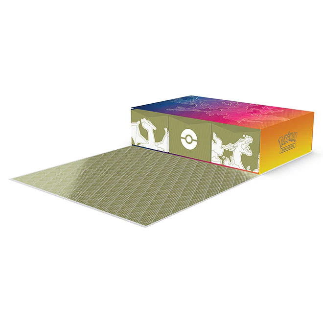 Celebrate the Sword & Shield Series and the era of Pokémon V, Pokémon VMAX, and Pokémon VSTAR with a hotshot who knows how to put all that power to good use! Charizard turns up the heat as a trio of promo cards with an etched foil treatment, and its Gigantamax form shows off blazing style on a playmat, metal coin, and set of card sleeves. Metal dice and condition markers round out this ultimate set of gameplay accessories. And as you open the huge stack of booster packs inside this box, take a journey through the Sword & Shield Series with an original booklet full of images and stats!