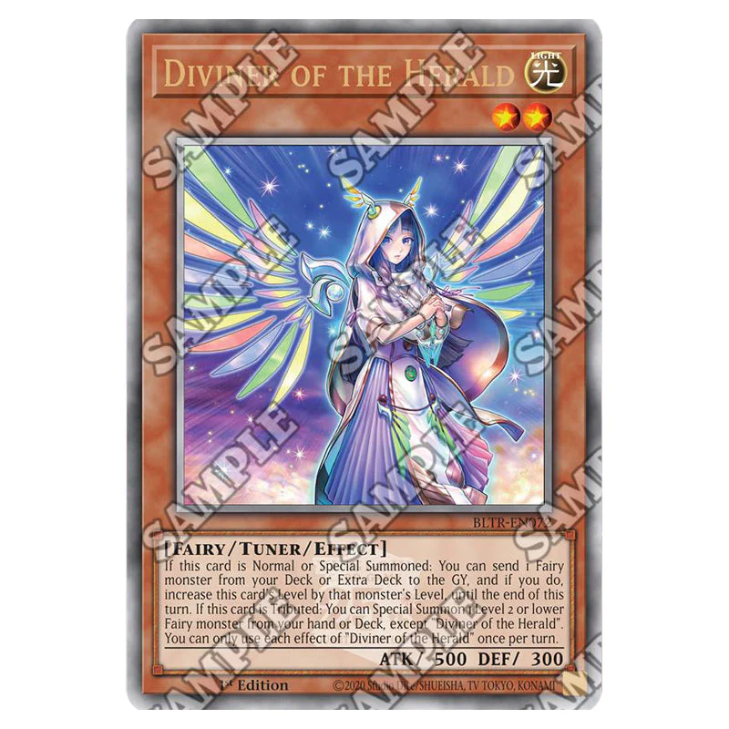 Diviner of the Herald is a Quarter Century Secret Rare, Effect Tuner monster from the Yugioh set Battles of Legend: Terminal Revenge (BLTR-EN072a)